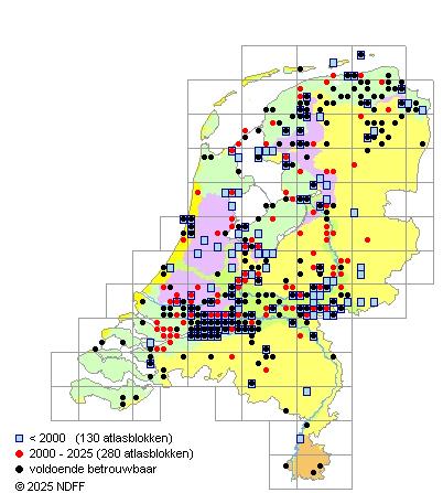 Het voor waarnemingsinspanning gecorrigeerde, of door een expert geschatte aantal atlasblokken (5x5 km)