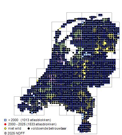 Het voor waarnemingsinspanning gecorrigeerde, of door een expert geschatte aantal atlasblokken (5x5 km)