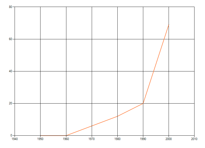 waarin de soort voorkomt per periode van tien jaar. Soms fluctueert het aantal sterk. Hoe vloeiender de lijn,