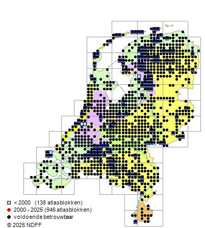 Het voor waarnemingsinspanning gecorrigeerde, of door een expert geschatte aantal atlasblokken (5x5 km)