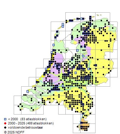Het voor waarnemingsinspanning gecorrigeerde, of door een expert geschatte aantal atlasblokken (5x5 km)