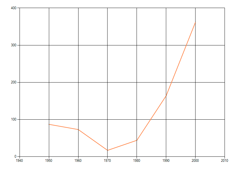 waarin de soort voorkomt per periode van tien jaar. Soms fluctueert het aantal sterk. Hoe vloeiender de lijn,