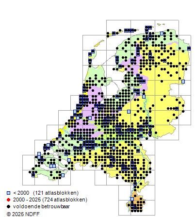 Het voor waarnemingsinspanning gecorrigeerde, of door een expert geschatte aantal atlasblokken (5x5 km)