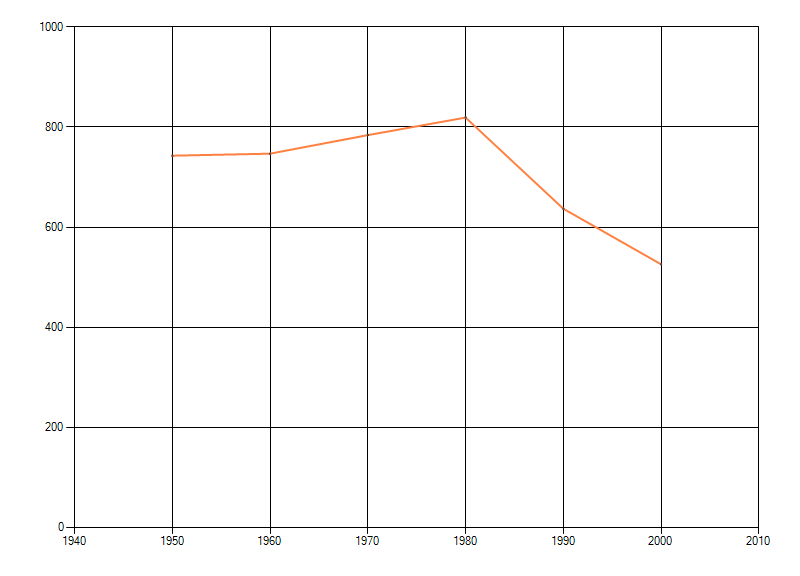waarin de soort voorkomt per periode van tien jaar. Soms fluctueert het aantal sterk. Hoe vloeiender de lijn,