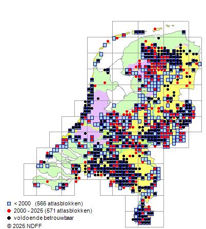 Het voor waarnemingsinspanning gecorrigeerde, of door een expert geschatte aantal atlasblokken (5x5 km)