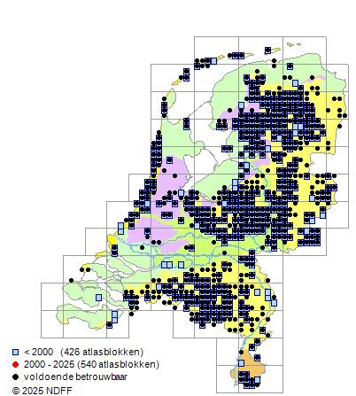 Het voor waarnemingsinspanning gecorrigeerde, of door een expert geschatte aantal atlasblokken (5x5 km)