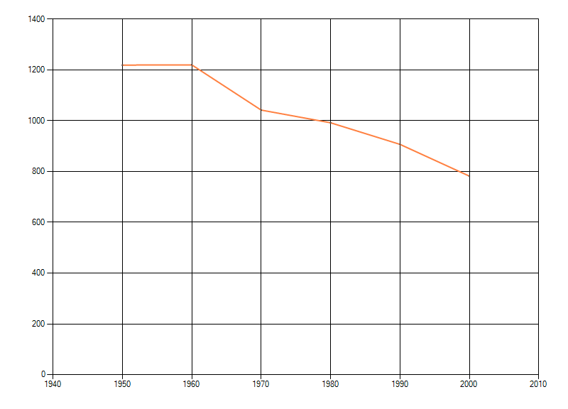 Het voor waarnemingsinspanning gecorrigeerde, of door een expert geschatte aantal atlasblokken (5x5 km) waarin de soort voorkomt per periode van tien jaar. Soms fluctueert het aantal sterk. Hoe vloeiender de lijn, des te betrouwbaarder de grafiek. Bron: Rode Lijst Mossen 2010. © BLWG 2011