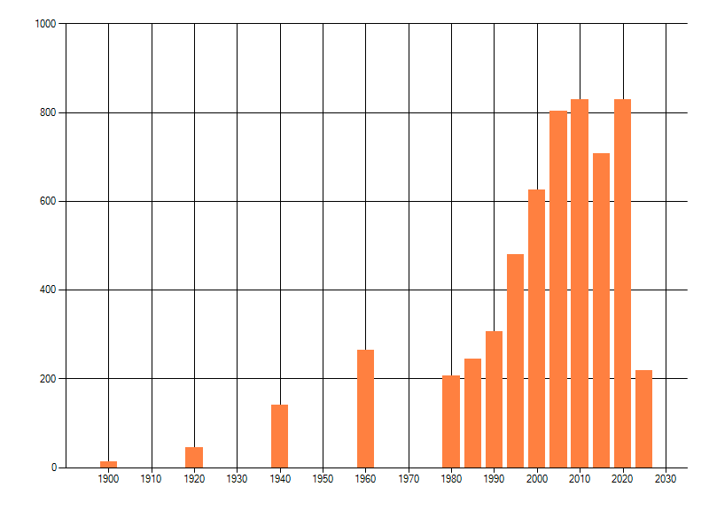 Het aantal atlasblokken (5x5 km) waarin de soort is gemeld binnen een periode van vijf jaar (vanaf 1980) of twintig jaar. Niet gecorrigeerd voor waarnemersinspanning en het aantal doorgegeven waarnemingen kan sterk variëren per periode, dus een trend in verspreiding kan hier niet direct uit worden afgelezen. Het opgegeven jaartal is het eerste jaar van de periode. Bron: gevalideerde waarnemingen uit de NDFF.