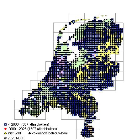 Niet gecorrigeerd voor waarnemersinspanning en het aantal doorgegeven waarnemingen kan sterk variƫren per periode,