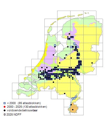 Het opgegeven jaartal is het eerste jaar van de periode. Bron: gevalideerde waarnemingen uit de NDFF.