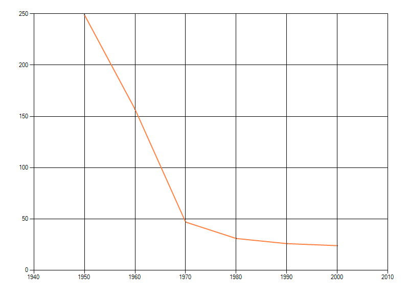 waarin de soort voorkomt per periode van tien jaar. Soms fluctueert het aantal sterk. Hoe vloeiender de lijn,