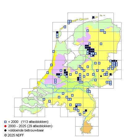 Het voor waarnemingsinspanning gecorrigeerde, of door een expert geschatte aantal atlasblokken (5x5 km)