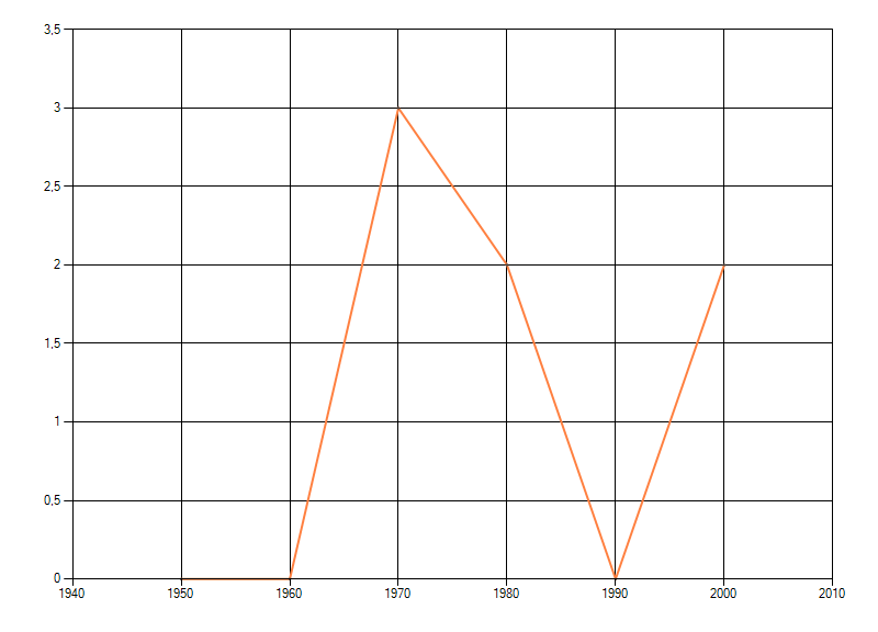 waarin de soort voorkomt per periode van tien jaar. Soms fluctueert het aantal sterk. Hoe vloeiender de lijn,