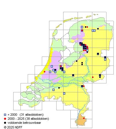 Het voor waarnemingsinspanning gecorrigeerde, of door een expert geschatte aantal atlasblokken (5x5 km)