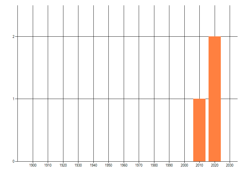 Het aantal atlasblokken (5x5 km) waarin de soort is gemeld binnen een periode van vijf jaar (vanaf 1980) of twintig jaar. Niet gecorrigeerd voor waarnemersinspanning en het aantal doorgegeven waarnemingen kan sterk variëren per periode, dus een trend in verspreiding kan hier niet direct uit worden afgelezen. Het opgegeven jaartal is het eerste jaar van de periode. Bron: gevalideerde waarnemingen uit de NDFF.