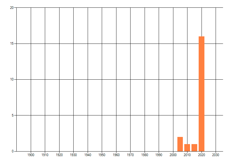 Het aantal atlasblokken (5x5 km) waarin de soort is gemeld binnen een periode van vijf jaar (vanaf 1980) of twintig jaar. Niet gecorrigeerd voor waarnemersinspanning en het aantal doorgegeven waarnemingen kan sterk variëren per periode, dus een trend in verspreiding kan hier niet direct uit worden afgelezen. Het opgegeven jaartal is het eerste jaar van de periode. Bron: gevalideerde waarnemingen uit de NDFF.