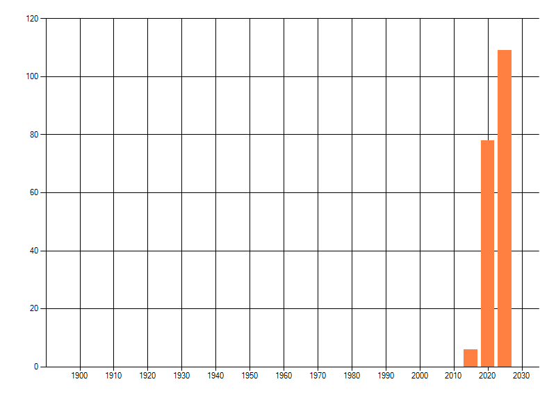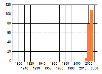 Het aantal atlasblokken (5x5 km) waarin de soort is gemeld binnen een periode van vijf jaar (vanaf 1980) of twintig jaar. Niet gecorrigeerd voor waarnemersinspanning en het aantal doorgegeven waarnemingen kan sterk variëren per periode, dus een trend in verspreiding kan hier niet direct uit worden afgelezen. Het opgegeven jaartal is het eerste jaar van de periode. Bron: gevalideerde waarnemingen uit de NDFF.