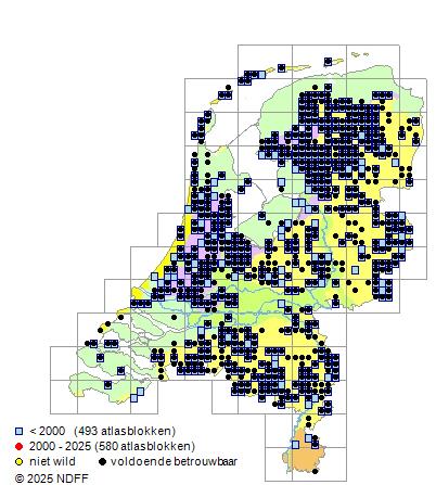 Het voor waarnemingsinspanning gecorrigeerde, of door een expert geschatte aantal atlasblokken (5x5 km)