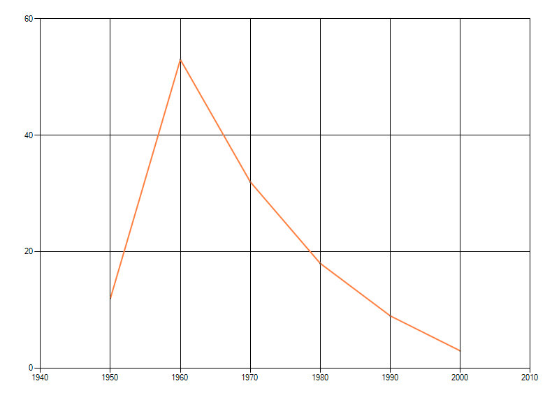 waarin de soort voorkomt per periode van tien jaar. Soms fluctueert het aantal sterk. Hoe vloeiender de lijn,