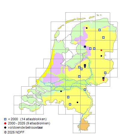 Het voor waarnemingsinspanning gecorrigeerde, of door een expert geschatte aantal atlasblokken (5x5 km)