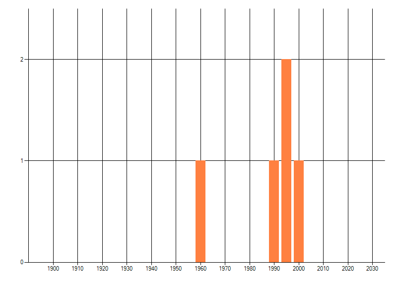 Het aantal atlasblokken (5x5 km) waarin de soort is gemeld binnen een periode van vijf jaar (vanaf 1980) of twintig jaar. Niet gecorrigeerd voor waarnemersinspanning en het aantal doorgegeven waarnemingen kan sterk variëren per periode, dus een trend in verspreiding kan hier niet direct uit worden afgelezen. Het opgegeven jaartal is het eerste jaar van de periode. Bron: gevalideerde waarnemingen uit de NDFF.