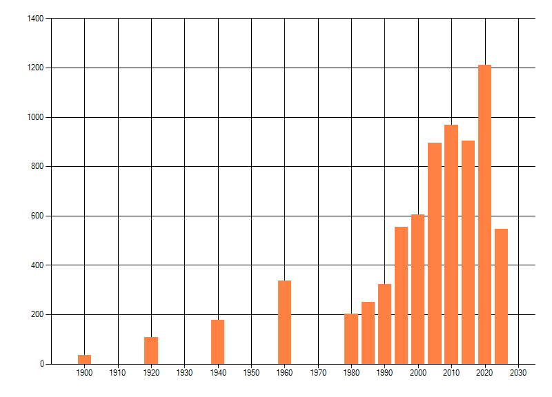 Het aantal atlasblokken (5x5 km) waarin de soort is gemeld binnen een periode van vijf jaar (vanaf 1980) of twintig jaar. Niet gecorrigeerd voor waarnemersinspanning en het aantal doorgegeven waarnemingen kan sterk variëren per periode, dus een trend in verspreiding kan hier niet direct uit worden afgelezen. Het opgegeven jaartal is het eerste jaar van de periode. Bron: gevalideerde waarnemingen uit de NDFF.