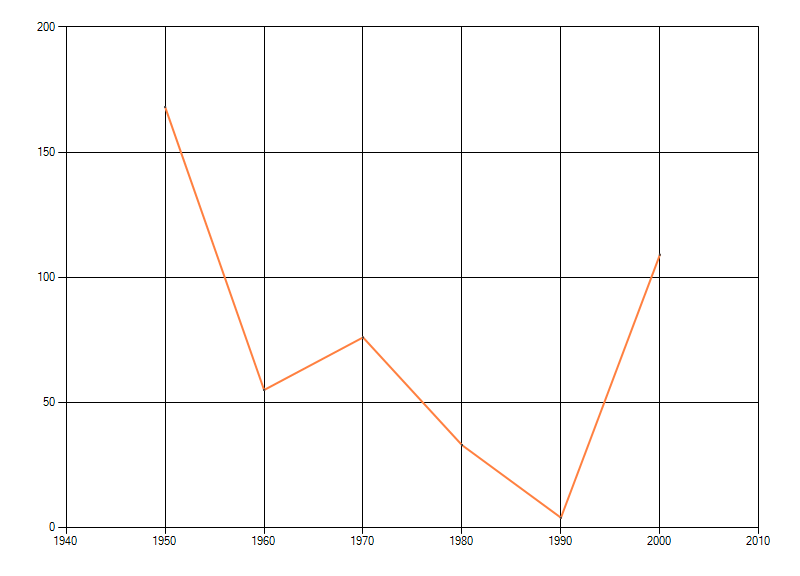 waarin de soort voorkomt per periode van tien jaar. Soms fluctueert het aantal sterk. Hoe vloeiender de lijn,
