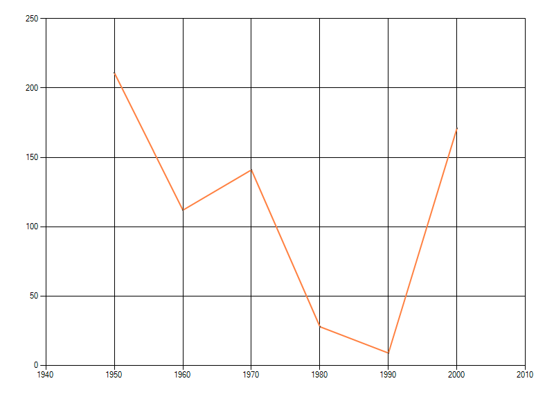 waarin de soort voorkomt per periode van tien jaar. Soms fluctueert het aantal sterk. Hoe vloeiender de lijn,