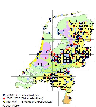 Het voor waarnemingsinspanning gecorrigeerde, of door een expert geschatte aantal atlasblokken (5x5 km)