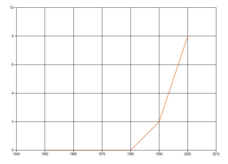 waarin de soort voorkomt per periode van tien jaar. Soms fluctueert het aantal sterk. Hoe vloeiender de lijn,