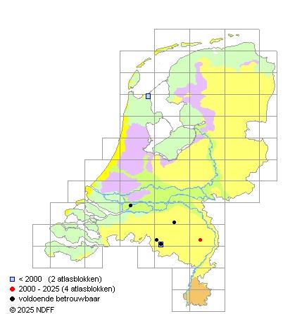The arctic-alpine species Polytrichum alpinum has been found on five places in the country, starting in 1979. Mostly it was found in or along ditches on loamy sand, once on sandy clay on the upturned base of a fallen poplar.