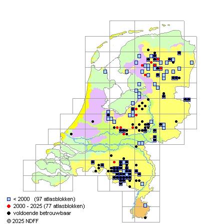 waarin de soort voorkomt per periode van tien jaar. Soms fluctueert het aantal sterk. Hoe vloeiender de lijn,