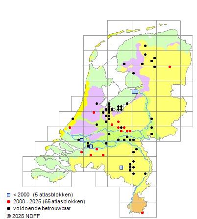 waarin de soort voorkomt per periode van tien jaar. Soms fluctueert het aantal sterk. Hoe vloeiender de lijn,