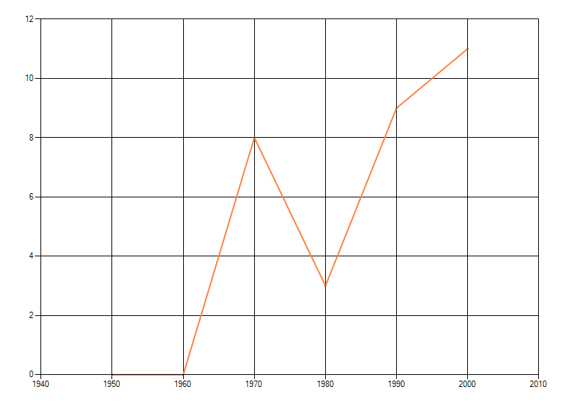 waarin de soort voorkomt per periode van tien jaar. Soms fluctueert het aantal sterk. Hoe vloeiender de lijn,
