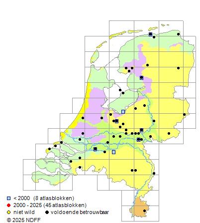 Het voor waarnemingsinspanning gecorrigeerde, of door een expert geschatte aantal atlasblokken (5x5 km)