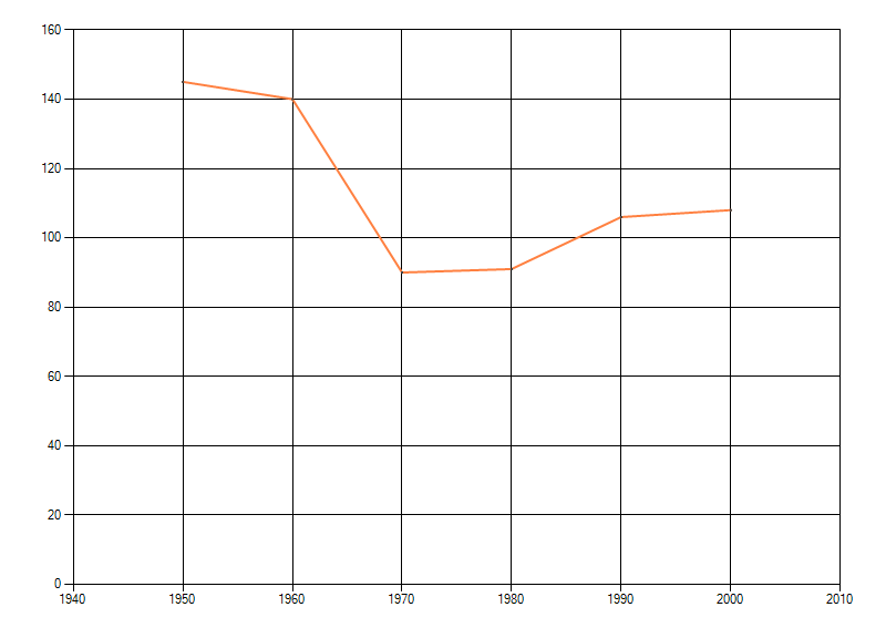 waarin de soort voorkomt per periode van tien jaar. Soms fluctueert het aantal sterk. Hoe vloeiender de lijn,