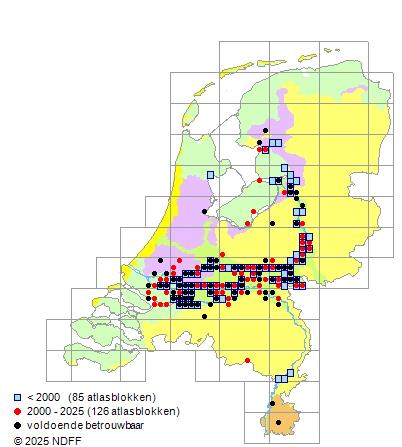 Het voor waarnemingsinspanning gecorrigeerde, of door een expert geschatte aantal atlasblokken (5x5 km)