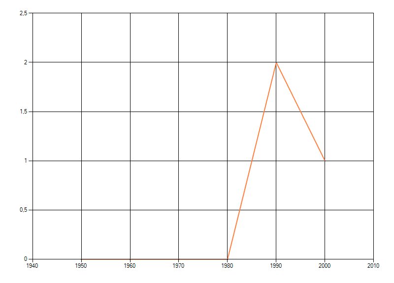 waarin de soort voorkomt per periode van tien jaar. Soms fluctueert het aantal sterk. Hoe vloeiender de lijn,