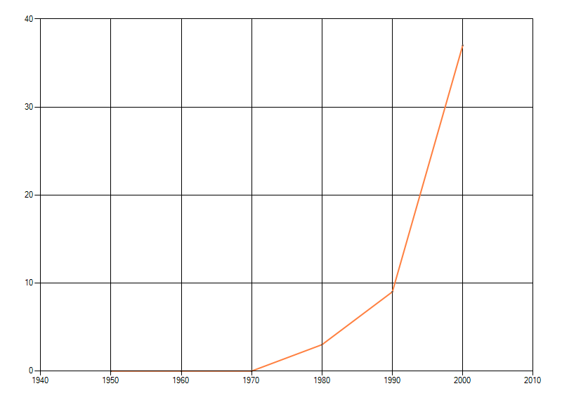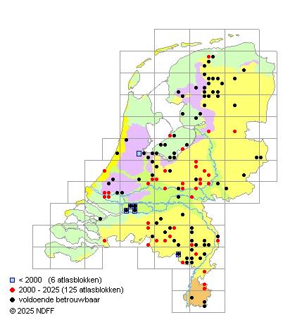 waarin de soort voorkomt per periode van tien jaar. Soms fluctueert het aantal sterk. Hoe vloeiender de lijn,