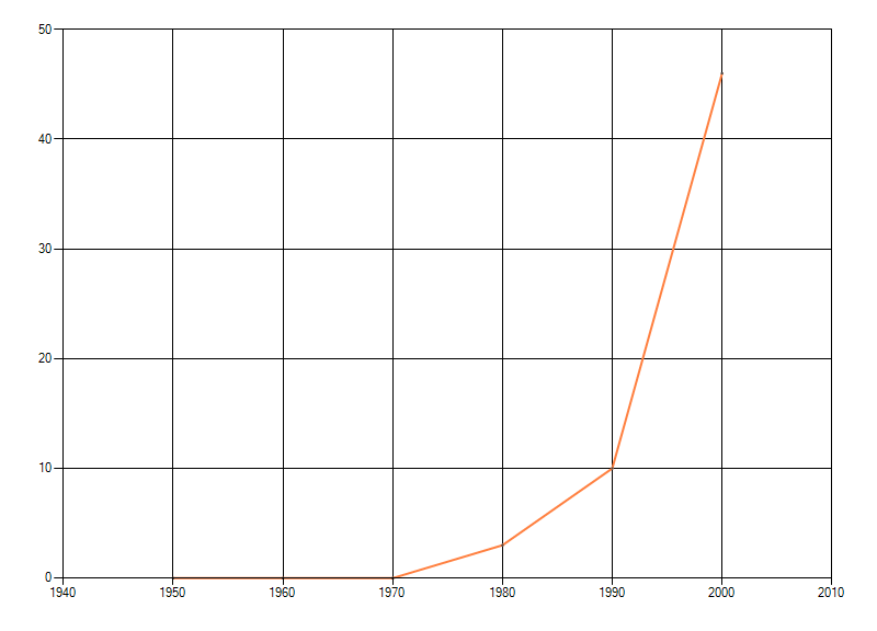 waarin de soort voorkomt per periode van tien jaar. Soms fluctueert het aantal sterk. Hoe vloeiender de lijn,