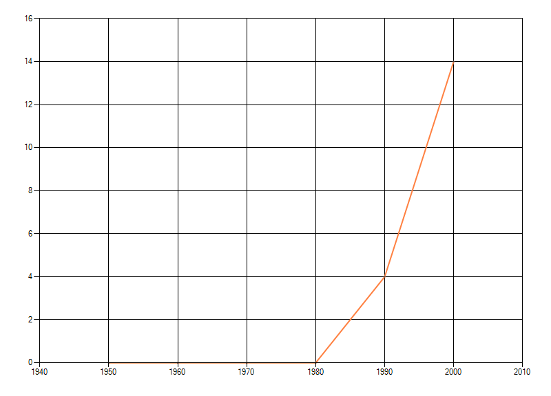 waarin de soort voorkomt per periode van tien jaar. Soms fluctueert het aantal sterk. Hoe vloeiender de lijn,
