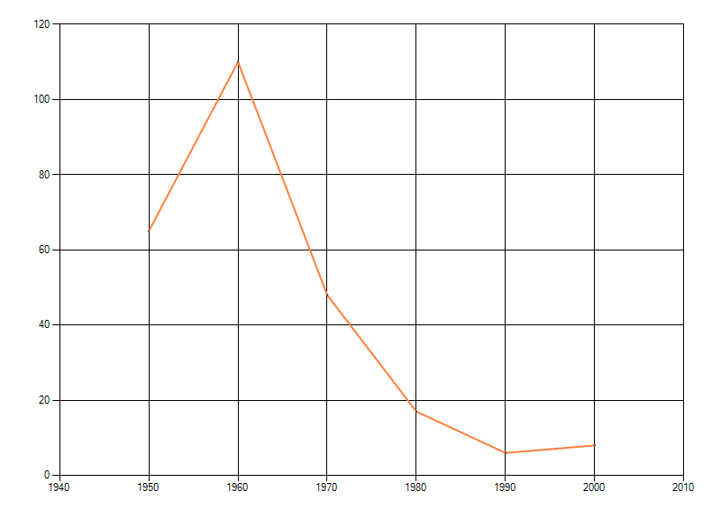 Het voor waarnemingsinspanning gecorrigeerde, of door een expert geschatte aantal atlasblokken (5x5 km) waarin de soort voorkomt per periode van tien jaar. Soms fluctueert het aantal sterk. Hoe vloeiender de lijn, des te betrouwbaarder de grafiek. Bron: Rode Lijst Mossen 2010. © BLWG 2011