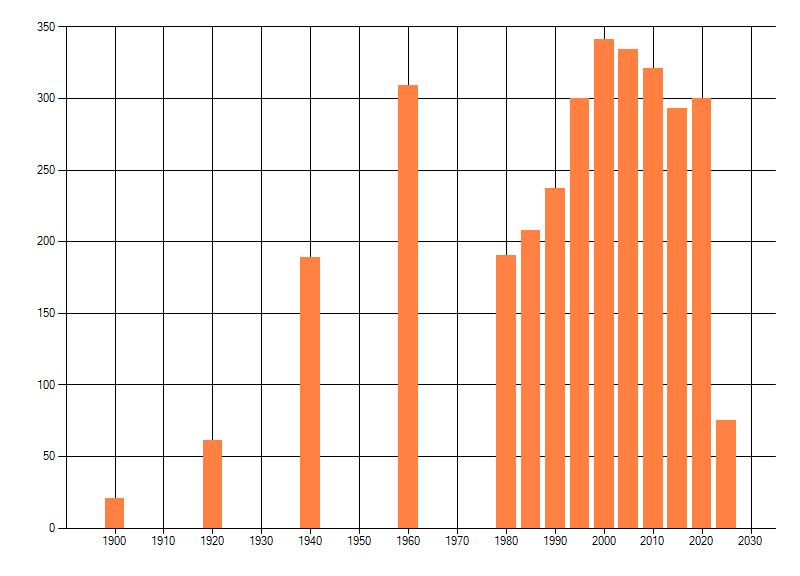 Het aantal atlasblokken (5x5 km) waarin de soort is gemeld binnen een periode van vijf jaar (vanaf 1980) of twintig jaar. Niet gecorrigeerd voor waarnemersinspanning en het aantal doorgegeven waarnemingen kan sterk variëren per periode, dus een trend in verspreiding kan hier niet direct uit worden afgelezen. Het opgegeven jaartal is het eerste jaar van de periode. Bron: gevalideerde waarnemingen uit de NDFF.
