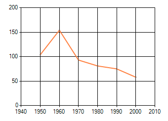 Het voor waarnemingsinspanning gecorrigeerde, of door een expert geschatte aantal atlasblokken (5x5 km) waarin de soort voorkomt per periode van tien jaar. Soms fluctueert het aantal sterk. Hoe vloeiender de lijn, des te betrouwbaarder de grafiek. Bron: Rode Lijst Mossen 2010. © BLWG 2011