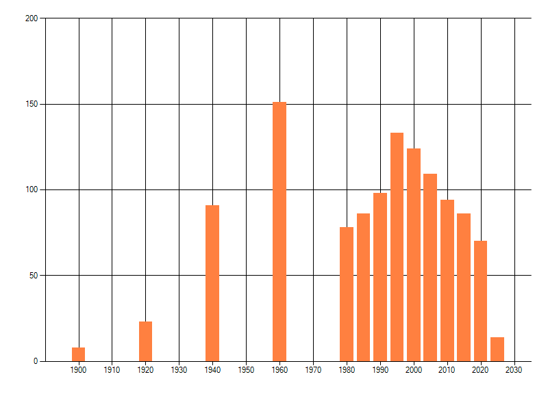 Het aantal atlasblokken (5x5 km) waarin de soort is gemeld binnen een periode van vijf jaar (vanaf 1980) of twintig jaar. Niet gecorrigeerd voor waarnemersinspanning en het aantal doorgegeven waarnemingen kan sterk variëren per periode, dus een trend in verspreiding kan hier niet direct uit worden afgelezen. Het opgegeven jaartal is het eerste jaar van de periode. Bron: gevalideerde waarnemingen uit de NDFF.