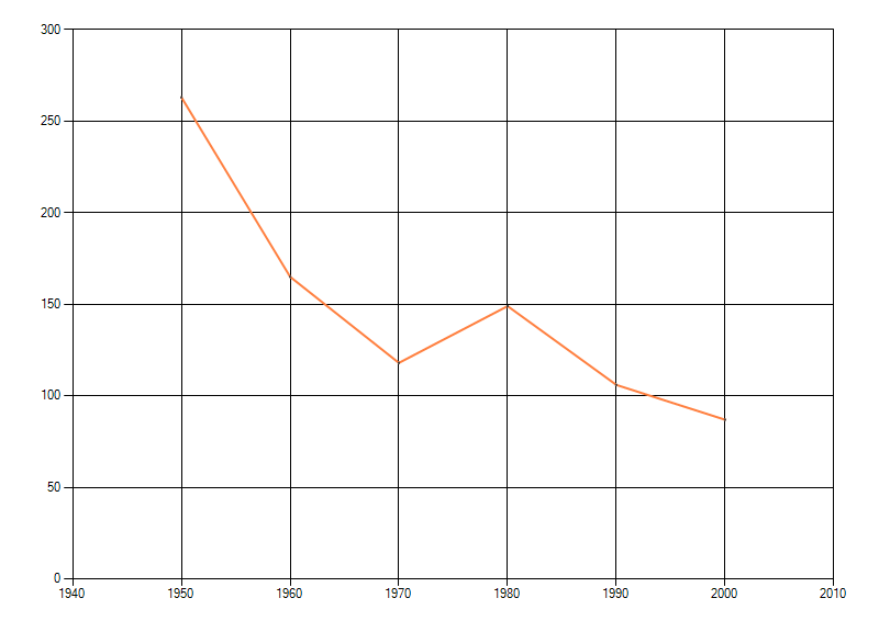 waarin de soort voorkomt per periode van tien jaar. Soms fluctueert het aantal sterk. Hoe vloeiender de lijn,