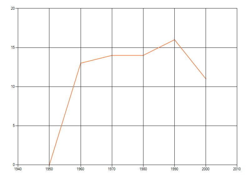 Het voor waarnemingsinspanning gecorrigeerde, of door een expert geschatte aantal atlasblokken (5x5 km) waarin de soort voorkomt per periode van tien jaar. Soms fluctueert het aantal sterk. Hoe vloeiender de lijn, des te betrouwbaarder de grafiek. Bron: Rode Lijst Mossen 2010. © BLWG 2011