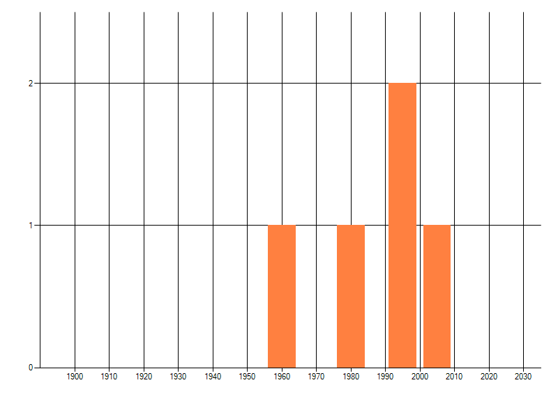 Het aantal atlasblokken (5x5 km) waarin de soort is gemeld binnen een periode van vijf jaar (vanaf 1980) of twintig jaar. Niet gecorrigeerd voor waarnemersinspanning en het aantal doorgegeven waarnemingen kan sterk variëren per periode, dus een trend in verspreiding kan hier niet direct uit worden afgelezen. Het opgegeven jaartal is het eerste jaar van de periode. Bron: gevalideerde waarnemingen uit de NDFF.