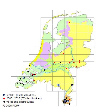 Het voor waarnemingsinspanning gecorrigeerde, of door een expert geschatte aantal atlasblokken (5x5 km)