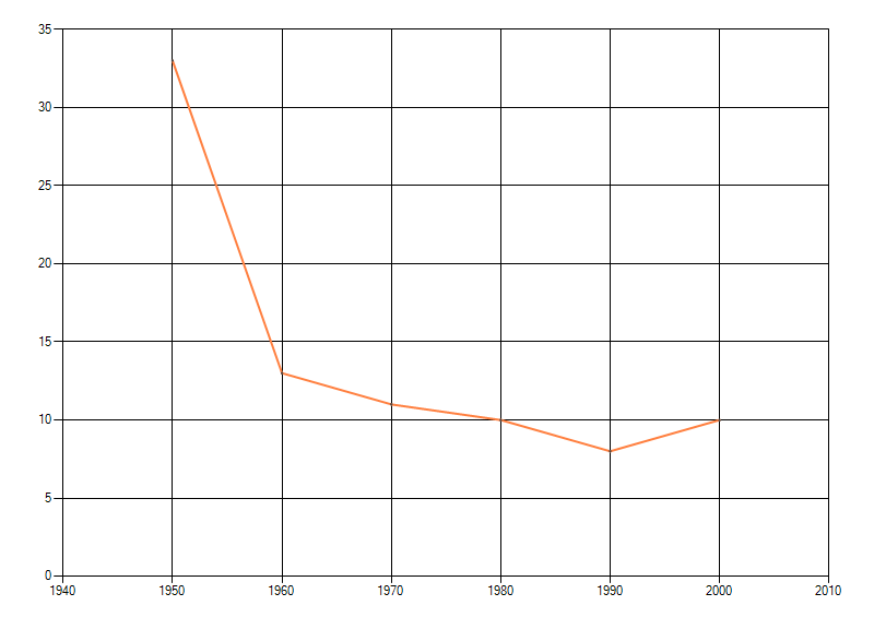 Het voor waarnemingsinspanning gecorrigeerde, of door een expert geschatte aantal atlasblokken (5x5 km) waarin de soort voorkomt per periode van tien jaar. Soms fluctueert het aantal sterk. Hoe vloeiender de lijn, des te betrouwbaarder de grafiek. Bron: Rode Lijst Mossen 2010. © BLWG 2011